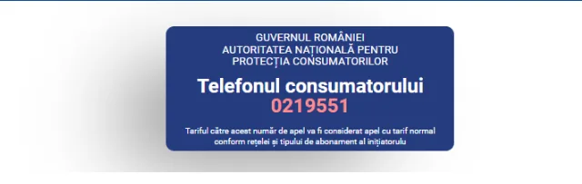Poti suna la Telefonul Consumatorului la numarul 0219551 sau poti depune o reclamatie online prin platforma oficiala ANPC, disponibila la adresa anpc.ro.
